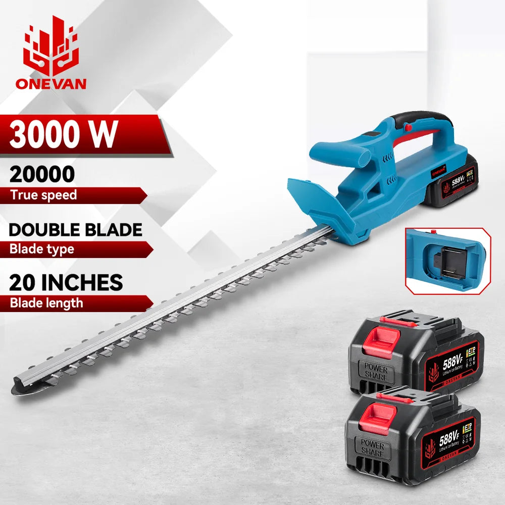 ONEVAN 20Inch 20000RPM Electric Hedge Trimmer 3000W Cordless Garden Landscaping Hedge Pruner Trimmer Power Tool For 21V Battery